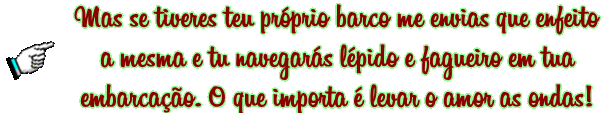 Que ótima ideia essa tia,agente escolhe um barquinho envia um poema pra vc,ou um recadinho,vc divulga aqui,etc e tal,entendi. Breve te enviarei algo,ainda essa semana tá?